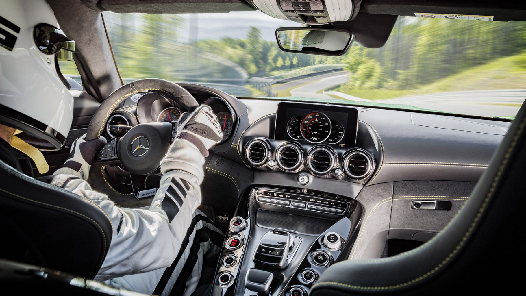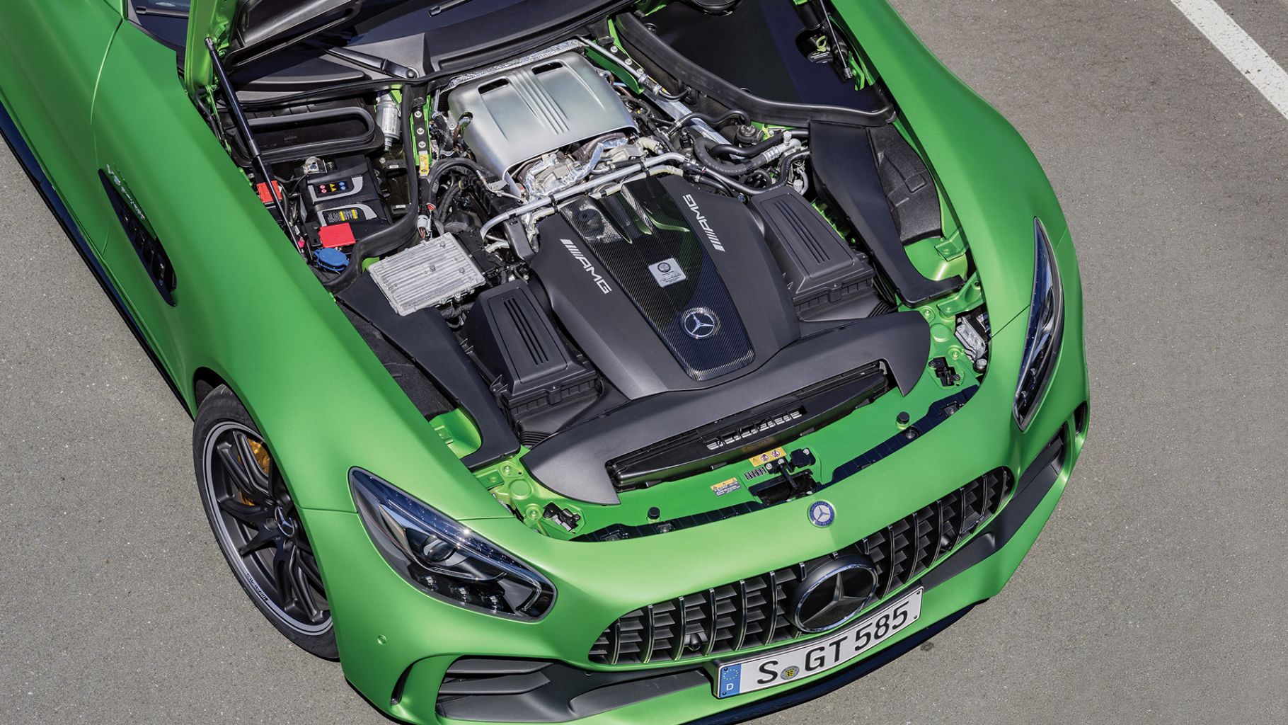 Principales caractéristiques : Moteur : V8 de 4,0 litres de cylindrée avec injection directe et suralimentation biturbo Cylindrée : 3 982 cm3 Puissance : 430 kW (585 ch) à 6 250 tr/min Couple maxi : 700 Nm à 1 900-5 500 tr/min Transmission : Propulsion Boîte de vitesses : 7 rapports à double embrayage SPEEDSHIFT DCT AMG Consommation : 15,1/9,2/11,4 l/100 km Emissions de CO2 en cycle mixte : 259 g/km Poids (DIN/CE) : 1 555*/1 630** Accélération de 0 à 100 km/h : 3,6 s Vitesse maximale : 318 km/h