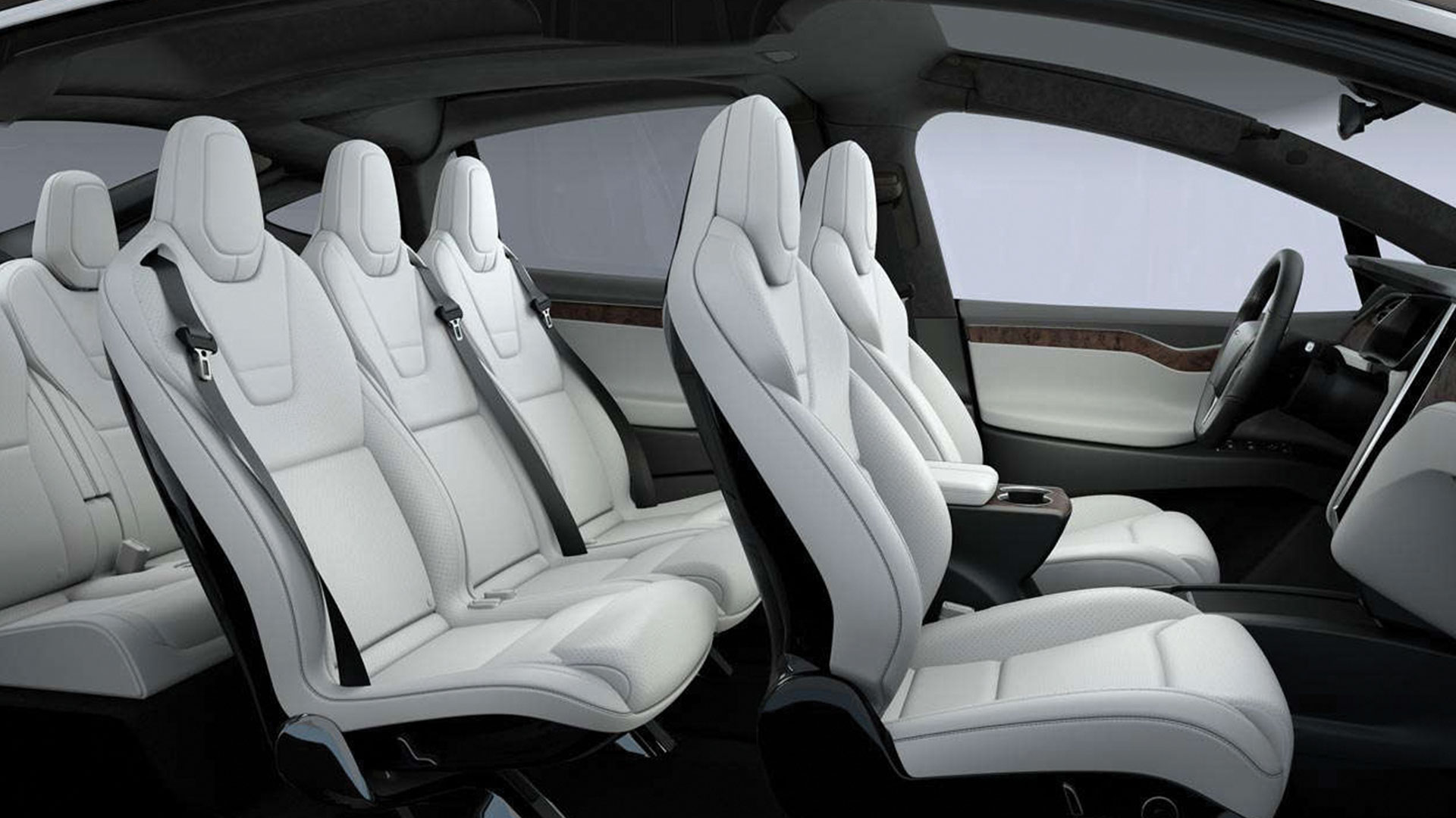 Un plafond trop bas ? Elles ne déploieront que la partie basse de la porte. Un mur trop collé ? Elles se lèveront suffisamment en hauteur avant de faire basculer la partie basse en position horizontale. Tout cela est géré dynamiquement et donne un accès parfait à l’habitacle, idéal pour faire grimper des enfants ou pour ranger des courses volumineuses. Ce grand espace est aussi parfait pour accéder aux deux sièges de la dernière rangées (la Model X dispose de 7 places) : la deuxième rangée se rabat à la pression d’un bouton sur un axe horizontal motorisé également qui évite toute contorsion. Si un adulte peut parfaitement rester à l’arrière, on conseillera ces places aux personnes de taille moyenne pour que le confort soit maximal, même si tous les sièges peuvent s’ajuster (notamment depuis le tableau de bord) pour libérer de l’espace pour les jambes. Sur route
