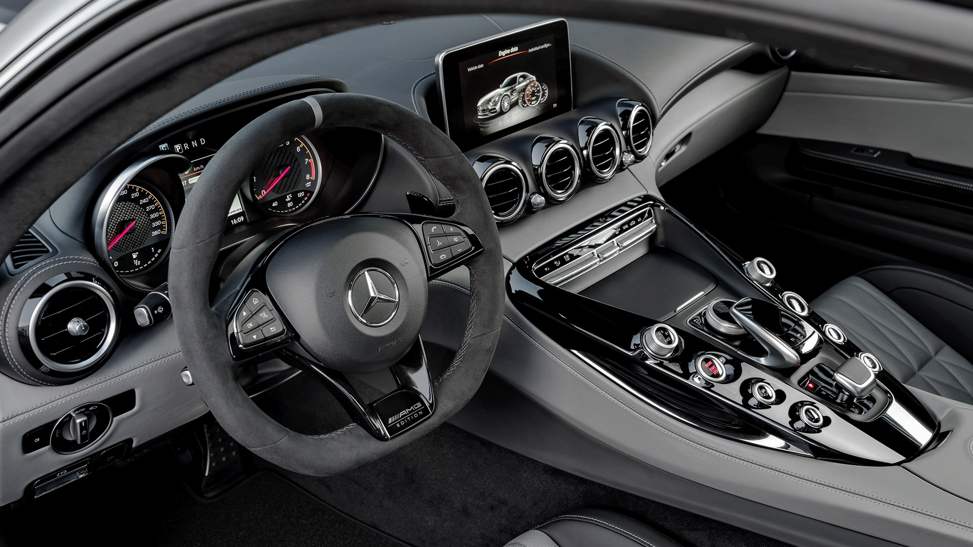 La famille s’agrandit ! En 2017, Mercedes-AMG fêtera ses 50 ans. Pour la marque de voitures de sport hautes performances, c’est l’occasion d’agrandir la famille de voitures de sport AMG GT avec la nouvelle Mercedes-AMG GT C, avec pour thème « 50 Years of Driving Performance ». Après le roadster AMG GT C, le coupé est désormais lui aussi disponible à un nouveau niveau de performance et de technologie. Il se situe entre l’AMG GT S et l’AMG GT R et sera, au début, exclusivement disponible en tant que modèle spécial Edition 50. Parallèlement, les Mercedes-AMG GT et AMG GT S feront l’objet d’améliorations optiques et techniques et développeront encore plus de puissance. « Avec l’AMG GT C, nous étendons notre portefeuille de voitures de sport à six modèles ainsi qu’à la voiture de course clients AMG GT3. En moins de trois ans, nous sommes passés de notre second véhicule conçu de manière entièrement autonome à une famille offrant une expérience de conduite hautement dynamique aux facettes multiples. Pour cette année anniversaire, nous démarrons avec l’exclusive Edition 50 du nouveau coupé AMG GT C. Dans ce contexte, nous allons également reciseler l’AMG GT et l’AMG GT S de manière optique et technique », déclare Tobias Moers, directeur du réseau de vente chez Mercedes-AMG GmbH. Critère d’identification homogène : la nouvelle partie avant Les nouveaux modèles sont reconnaissables à la calandre AMG Panamericana prononcée équipant désormais tous les modèles AMG GT. Elle souligne son appartenance au sport motorisé : 15 baguettes chromées verticales rappellent le style de l’actuelle voiture de course Mercedes-AMG GT3 dédiée au sport client. La nouvelle jupe avant renforce l’effet de largeur et campe les véhicules encore plus fermement sur la chaussée. Les grandes prises d’air extérieures couvrent les besoins de la propulsion en air de refroidissement.