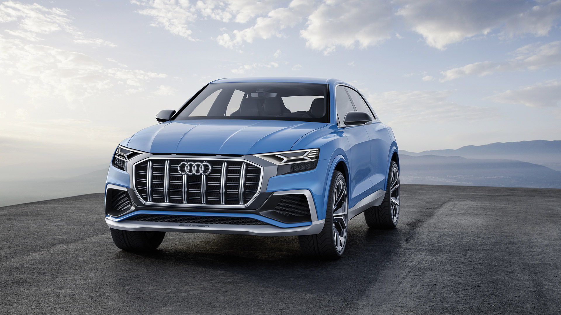 Prestige et sportivité inégalés – voilà ce que représente l’Audi Q8 concept. La combinaison parfaite entre un SUV spacieux et le style émotionnel d’un coupé. Avec ce modèle, Audi se positionne sur un nouveau segment dans la catégorie des SUV. Dans le même temps, Audi offre un aperçu de son orientation future en termes de design avec ce concept-car. De nombreux éléments rappellent l’Audi Ur-quattro des années 80, avec notamment les montants C très plats et larges ainsi que l’épaulement puissant, bombé au-dessus des roues. En dépit d’une ligne de toit plane, l’Audi Q8 concept offre un espace généreux pour accueillir quatre personnes avec de nombreux bagages. Par ailleurs, les lignes très étirées confèrent à l’habitacle un look sportif et élégant. Le nouveau concept des commandes s'appuie sur des écrans tactiles agrandis par l’Audi Virtual Cockpit et l’affichage tête haute qui utilise la technologie intelligente de réalité augmentée pour fusionner le virtuel au monde réel. Par exemple, une flèche de navigation apparaît dans la même position que la flèche se trouvant sur la route. Le système d’entraînement et la suspension disposent de technologies haut de gamme issues de la production de série. Le puissant et très performant moteur plug-in hybride de l’Audi Q8 concept, délivre une puissance de 450 ch pour un couple de 700 Nm. Cette puissance est transférée à la route via la transmission intégrale permanente quattro. La suspension pneumatique et les disques de freins en céramique complètent cet ensemble impressionnant de technologies. Ce Concept-car est la base d’un modèle de série qu’Audi lancera sur le marché en 2018.