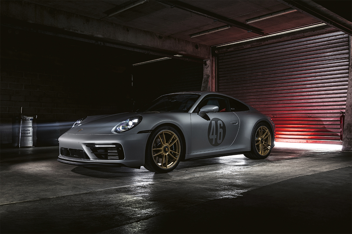 Voilà près de 3 ans que Porsche travaille sur ce modèle basé sur une 911 Carrera GTS, avec la volonté affirmée des designers de s’inspirer à la fois de la Porsche 356 SL ainsi que de la brutale Porsche 911 GT1. L’auto possède 25 éléments entièrement nouveaux et développés pour ce modèle conjointement avec Porsche France. L’auto est reconnaissable à sa livrée spécifique : une peinture unique Le Mans Silver et son logo 46, clin d’oeil à la 1ère victoire de Porsche avec la 356 SL en 1951, arborant ce numéro. Les jantes cuivrées Aurum sont du plus bel effet.