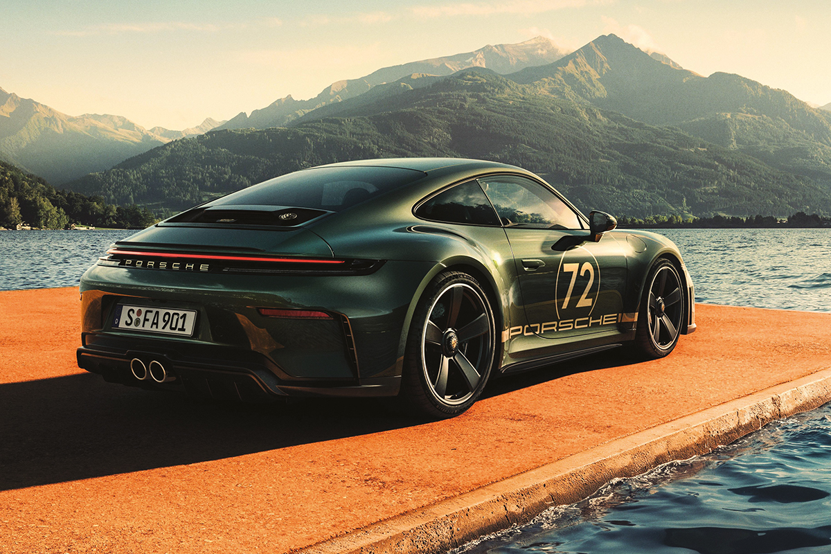 Cette édition exclusive est basée sur la Porsche 911 GT3 avec le pack Touring, et se révèle dans sa sublime robe verte “F.A. Green Metallic” (une couleur exclusivement créée en collaboration avec la famille Porsche et qui évoque le plus connu Oak Green Metallic), tandis que le nombre 72 sur les portières évoque les 72 ans du studio de design de la marque. Le coloris reste toutefois optionnel, le client pouvant laisser ses préférences s’exprimer pleinement. Quant aux jantes Fuchs (que l’on ne peut normalement pas choisir sur les 911 avec pack Touring), elles sont noires satinées et spécifiques au modèle, tout en arborant un moyeu spécifique.