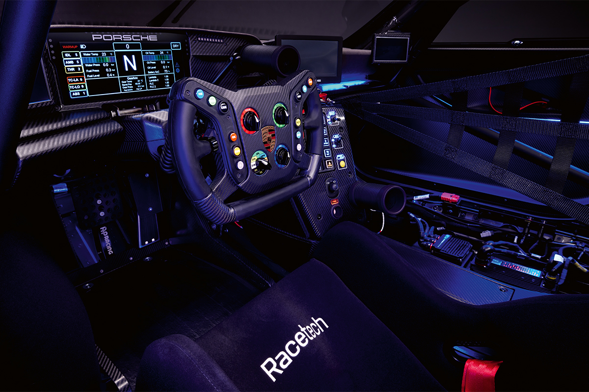 Sous le capot, nous avons un flat-six atmosphérique de 4,2 litres développant 611 chevaux pouvant tourner jusqu’à 9400 tours/min. Ce bloc a été spécialement conçu pour ce modèle avec des pistons et arbres à came fabriqués sur mesure, et permet de rouler avec du carburant E25. Une boîte de vitesses séquentielle à six rapports permet de communiquer toute cette puissance aux seules roues arrière. Porsche ne communique pas sur les performances, mais elles sont a minima aussi agressives que celles de la 911 GT3 R “standard”. Véritable délire d’ingénieurs mécaniques, cette auto n’a qu’une seule raison d’être : la performance et le plaisir au volant, sans compromis.