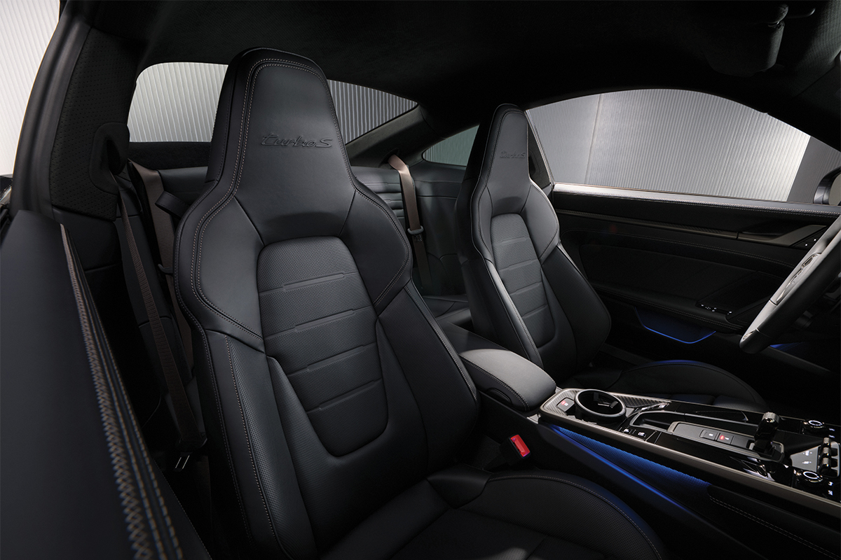 La nouvelle Turbo S possède un dessin dans la digne lignée des modèles de la famille Turbo. On la reconnait à sa carrosserie légèrement plus large qu’une 911 Carrera et en y ajoutant tous les bénéfices d’une aérodynamique active : nouveau bouclier avant avec clapets intégrés et aileron arrière actif. Véritable pépite de technologie, la nouvelle 911 Turbo S intègre de série le contrôle électronique et hydraulique du châssis (Porsche Dynamic Chassis Control). L’auto possède un nouveau système de freinage novateur baptisé PCCB, dérivé du monde de la course automobile. Comble du gadget : la possibilité d’opter pour des balais d’essuie-glace en carbone (contre la modique somme de 1200 euros).