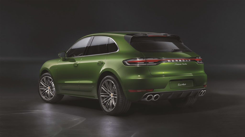 Difficile de modifier de fond un comble un modèle lors d’un restylage. L’auto reste fidèle à sa silhouette, si ce n’est ses trois grandes entrées d’air au niveau du bouclier avant. Le Macan Turbo restylé arbore également une nouvelle jupe latérale et un léger becquet de toit. De série, elle est équipée de jantes spécifiques 20 pouces et disques de frein revêtus de carbure de tungstène (les carbone-céramique sont en option). En plein paradoxe Taycan Turbo, l’échappement à quatre sorties est là pour nous rappeler ce que veut dire le mot Turbo chez Porsche, synonyme de performance et sportivité.