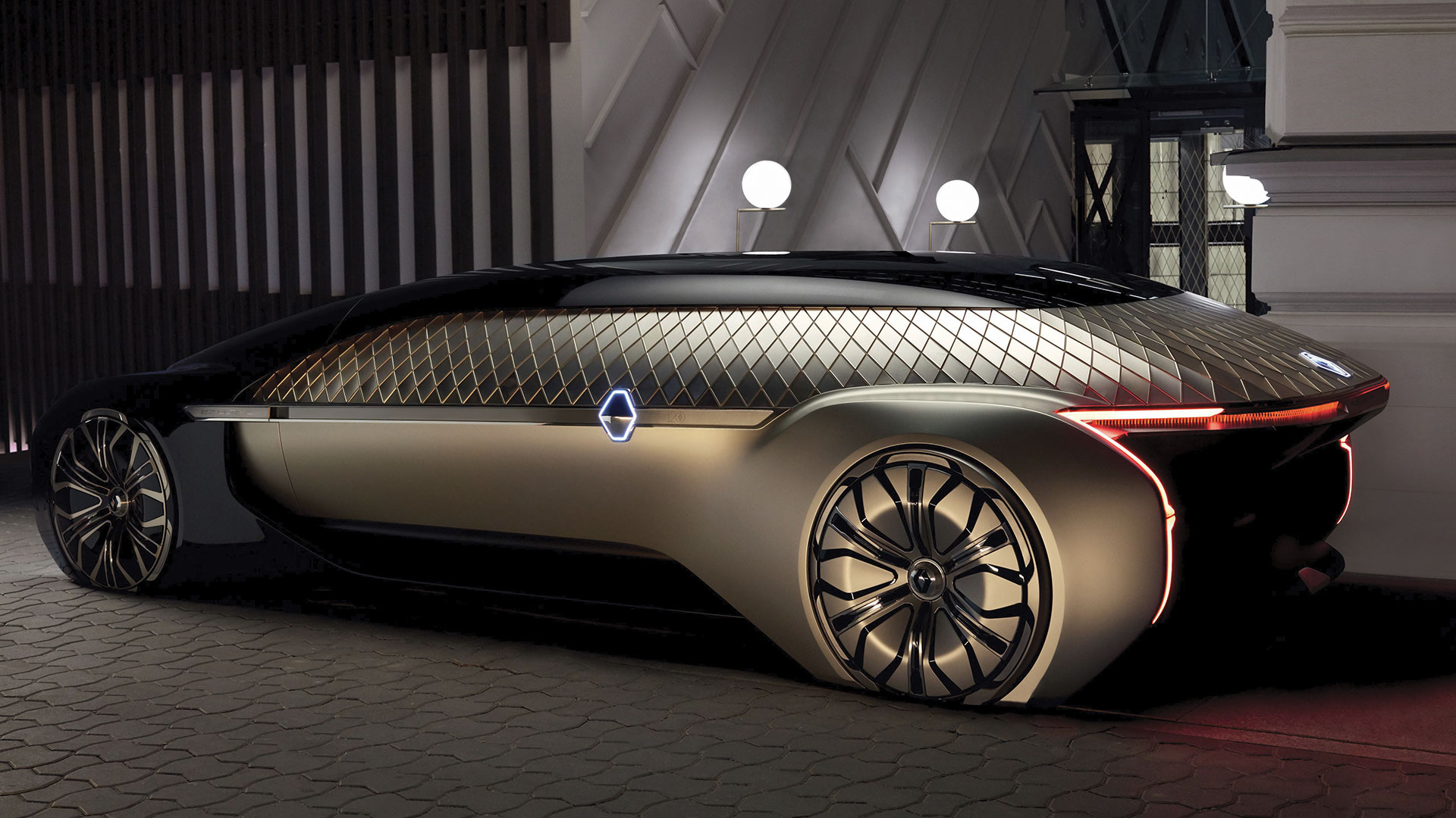 Plusieurs concepts cars voient le jour afin de définir la mobilité de demain. Le groupe Renault a présenté dans le cadre du mondial un projet de véhicule autonome assez particulier, EZ Ultimo. Celui-ci se veut comme un véhicule de transport de grand luxe 100% électrique, prêt à rivaliser les services de limousine ou autres VTC. Vraisemblablement, ce n’est pas un véhicule pour particuliers. N’oublions pas qu’il s’agit avant tout d’un concept car, donc une étude de style. Ceci explique les formes arrondies et pittoresques de ce véhicule qui, avouons-le, ne ressemble en rien aux véhicules actuels. Très bas (1m35) long (5m70) et arrondi, il semble dénué de fenêtres. La carrosserie noire et champagne accentue le côté luxueux du prototype, couvert d’un motif au losange propre à Renault. Mais c’est bien à l’intérieur que se passe l’essentiel du trajet pour les 3 occupants (max). Nous y retrouvons boiseries, parquet, cuirs et même du marbre. Symbole du haut-de-gamme et de l’expérience utilisateur, l’EZ Ultimo est également truffé de gadgets. Portes coulissantes, message de bienvenue, chargeurs à induction pour smartphones, borne Wi-Fi intégrée. Théoriquement, le concept car devrait être connecté à tous les services d’infrastructures routières, afin de circuler en ville mais également ailleurs. Véhicule autonome de niveau 4, ce véhicule dispose également de 4 roues motrices. Ce qui nous met face à la réalité : en ce qui concerne certains services à la personne, notamment en matière de transports, il semblerait que l’humain soit de moins en moins présent. L’absence de poste de conduite n’est pas pour nous contredire. D’autant plus que l’EZ Ultimo peut se recharger lui-même par induction. Pour l’instant, ce Renault EZ Ultimo reste une simple vision de l’esprit, le constructeur français ne pouvant pas donner de plus amples informations sur le modèle (poids, puissance etc…).