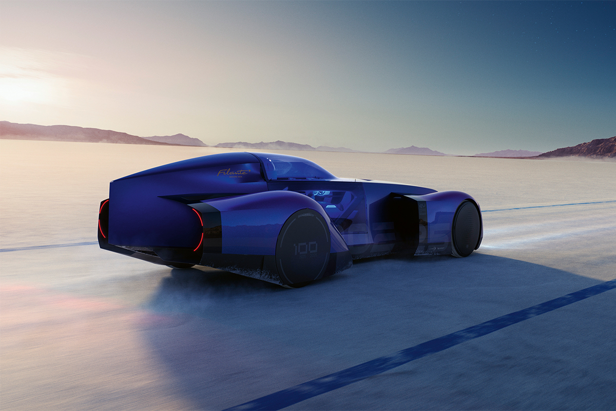 Sous le capot, il semblerait que nous soyons face à un groupe motopropulseur électrique dont les détails sont pour l’heure obscurs. Nous savons uniquement qu’elle utiliserait une batterie de 87 kWh. En d’autres mots, la même que l’on pourrait trouver sur un Renault Scenic e-Tech (probablement adaptée, cela dit). Le concept de la Filante version 2025 offre donc une approche nouvelle qui semble confirmer nos soupçons : la quête de la vitesse et de la performance absolue est devenue obsolète, remplacée par celle à l’efficacité. Pour Renault l’objectif est clair : la performance certes, mais celle-ci devra aller de pair avec une autonomie et une consommation exemplaires.