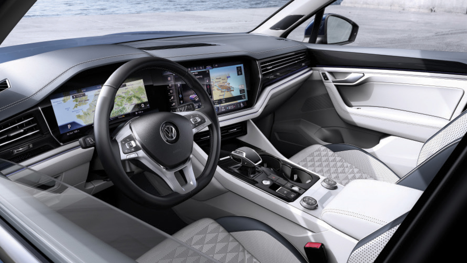 À l’intérieur, le mot premium prend tout son sens. Nous en voulons pour preuve les sièges massants ! La personnalisation n’est pas oubliée avec plus de 30 éclairages d’ambiance et 3 finitions possibles. L’écran multimédia tactile de la console centrale intègre le système révolutionnaire Innovision Cockpit. Qui plus est, les aides à la conduite sont nombreuses : conduite semi-autonome, Park Assist, Nightvision... Niveau pratique, le coffre s'agrandit et passe à 810 litres (sans la banquette arrière rabattue). De plus, les capacités de remorquage du nouveau Touareg méritent d’être mentionnées : jusqu’à 3,5 tonnes. Sous le capot, Volkswagen propose deux versions retravaillées de son bloc diesel V6 3,0 L TDI. L’un développe 231 chevaux (500 Nm) et l’autre 286 chevaux (600 Nm). Mais aussi un bloc diesel V8 4,0 TDI de 421 chevaux. Une boîte automatique à 8 rapports transmet la puissance aux 4 roues directrices. Une motorisation hybride arrivera dans l’année 2018. La transmission intégrale active 4Motion est disponible sur tous les modèles. Quand bien même Volkswagen n’a pas encore communiqué les prix de son nouveau Touareg, les futurs clients peuvent se rassurer en se disant que le modèle arrive bel et bien cet été 2018.